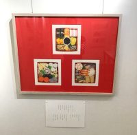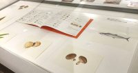 ガラスケースには、英語版『OSECHI』の巻末にあるそれぞれの食材紹介のために描かれた原画を展示しています。絵本では豆粒くらいに縮小されていますが、実はこんなに丁寧に一つ一つ描いていたのですね、圧巻!