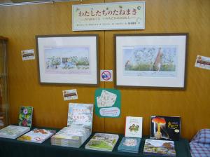 ナルニアホール横の壁で「わたしたちのたねまきミニ展」を開催中。たねやたねまきにまつわる素敵な絵本をご紹介しています。また絵本『わたしたちのたねまき』をお買い上げの方には、特製ポストカードを2枚差しあげています。ぜひお立ち寄りくださいませ。(~10月末まで)